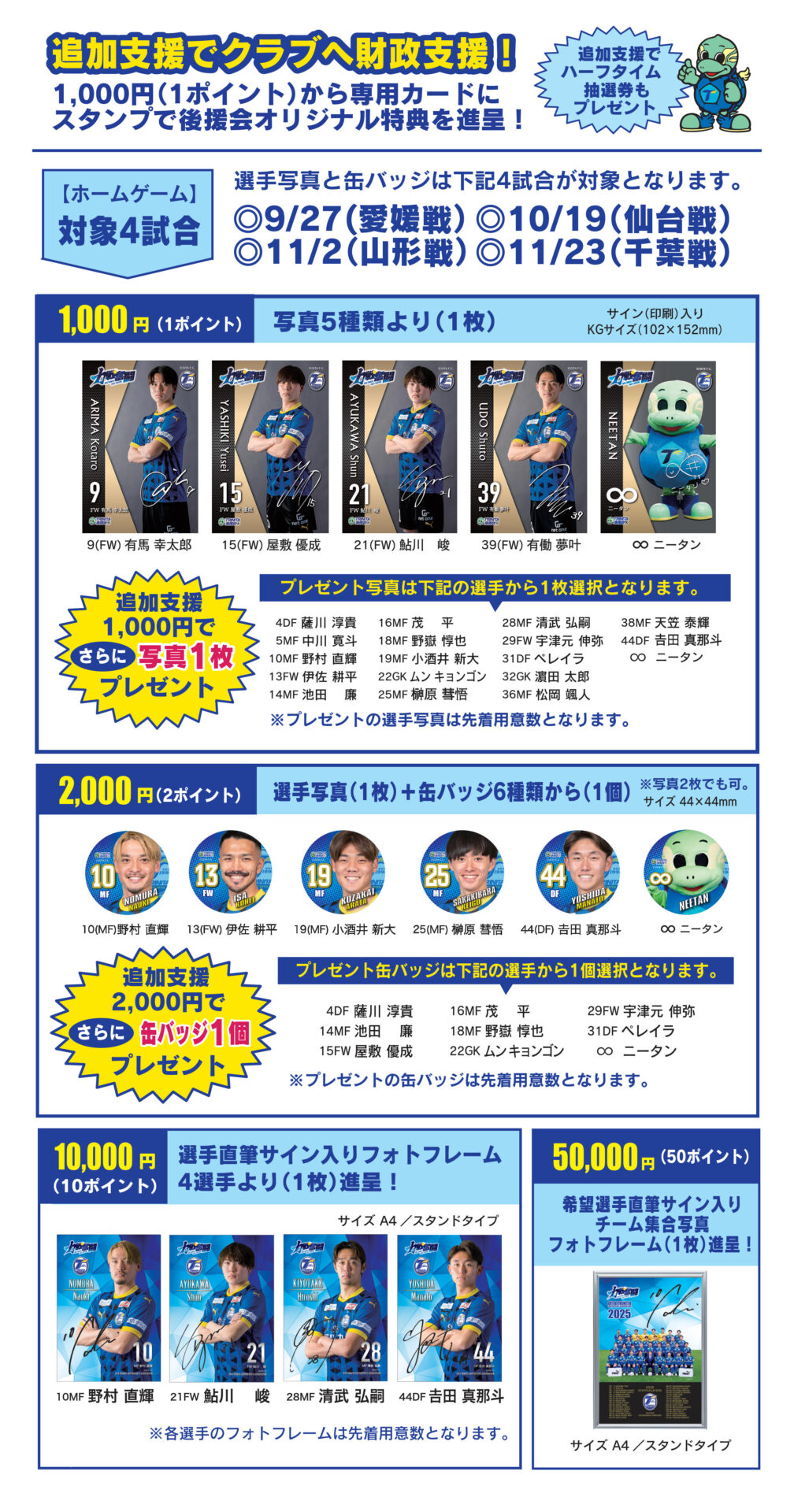 ※追加支援でハーフタイム抽選応募券も進呈いたします。